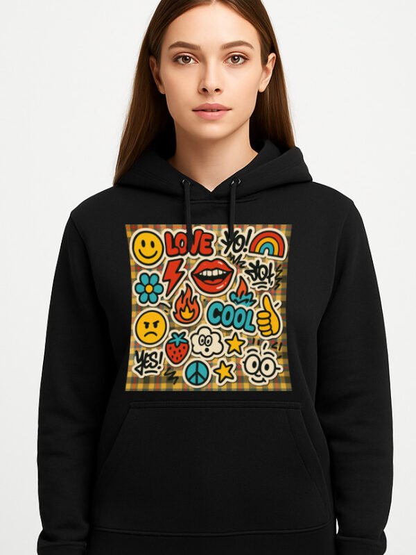 € 65.00Channel vintage charm with this black hoodie featuring bold 70s-inspired graphics, groovy text, and vibrant retro colors. Peace, love, and style.