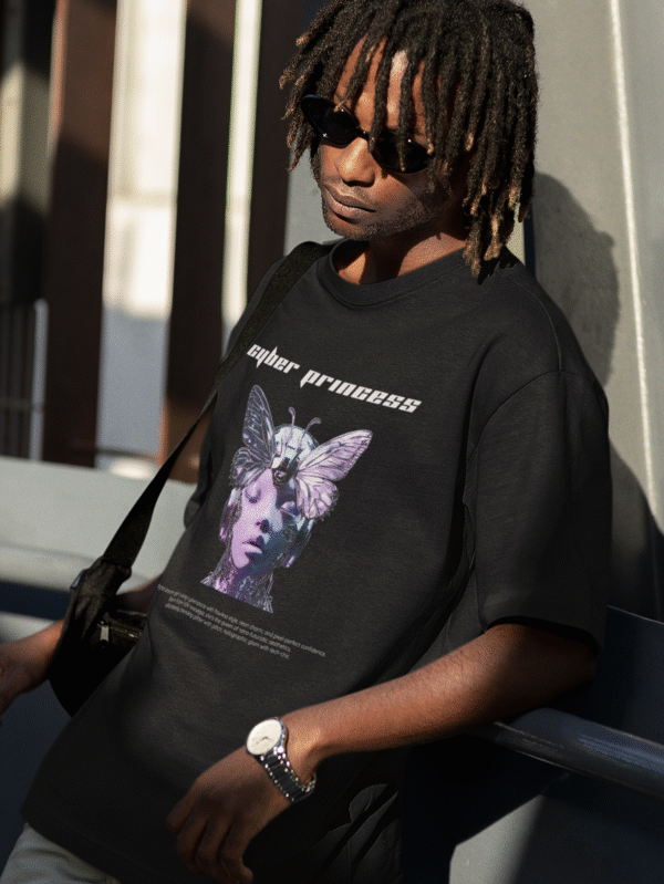 € 65.00She’s beauty, she’s bandwidth. The “Cyber Princess” tee fuses digital grace with glitchcore edge—where transformation wears a butterfly crown.