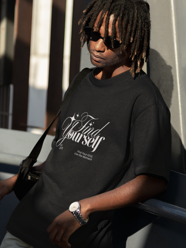 € 65.00Step into your truth with the “Find Yourself” tee. Featuring elegant typography and uplifting affirmations, this shirt is a stylish reminder to live with joy.