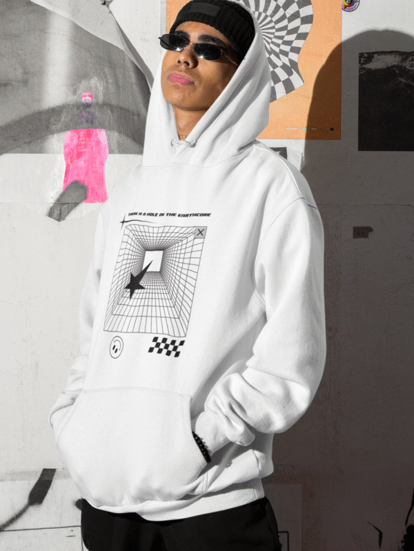 € 65.00Step into the void with the Earthcore Hoodie—a visually striking piece that blends digital illusion, cryptic messaging, and symbolic design.