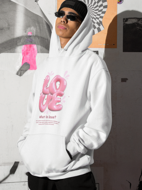 € 65.00Featuring oversized pink balloon letters and a heartfelt definition of love, this hoodie blends playful design with introspective vibes.