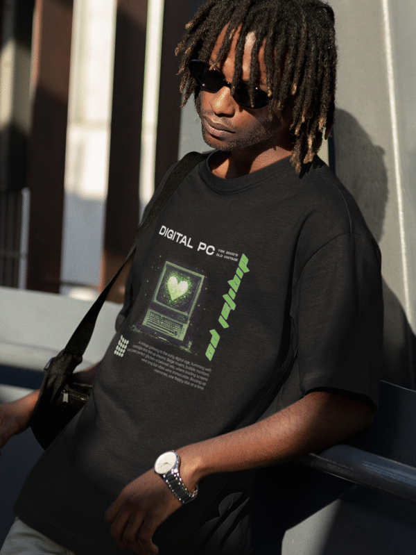 € 65.00Old system, new soul. The “Digital PC” tee blends vintage tech aesthetics with glitchy love—where hearts beat in pixels. “VIBES ONLY”