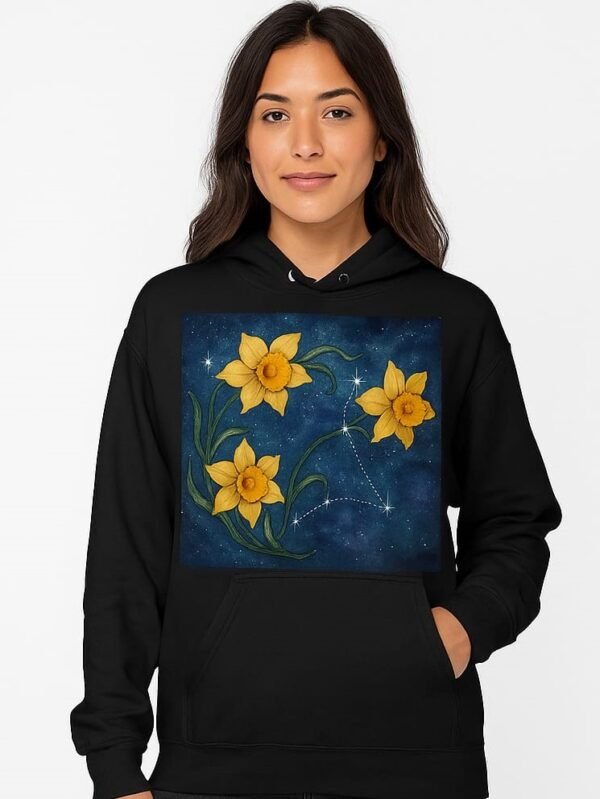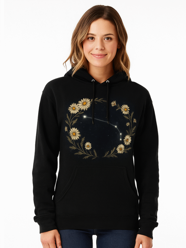 € 65.00A stylish black hoodie featuring a constellation framed by daisies—where cosmic vibes meet floral charm. Perfect for Fans of expressive, floral fashion.