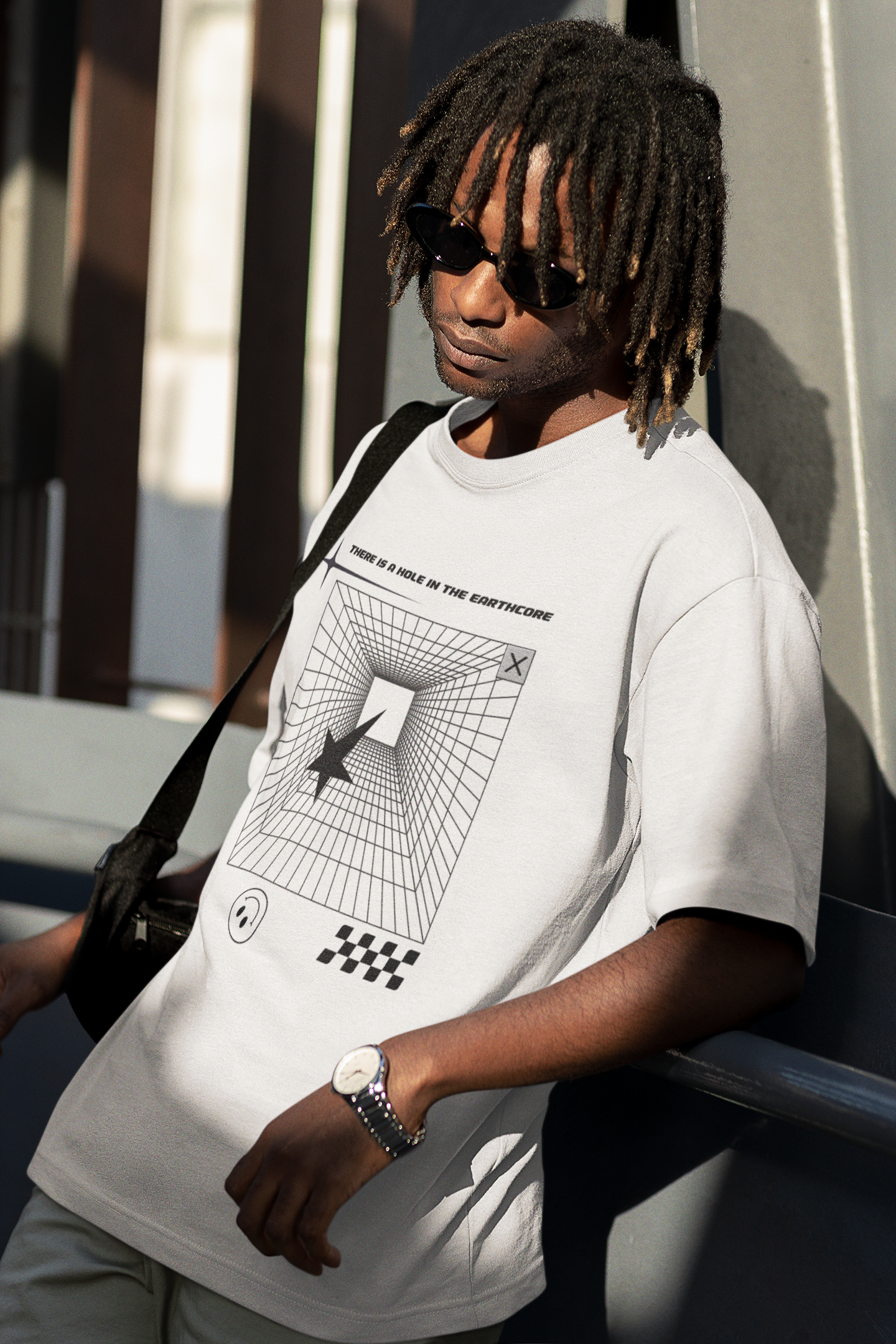 🌌 Hole in the Earthcore T-Shirt – Cosmic Grid Illusion ✨