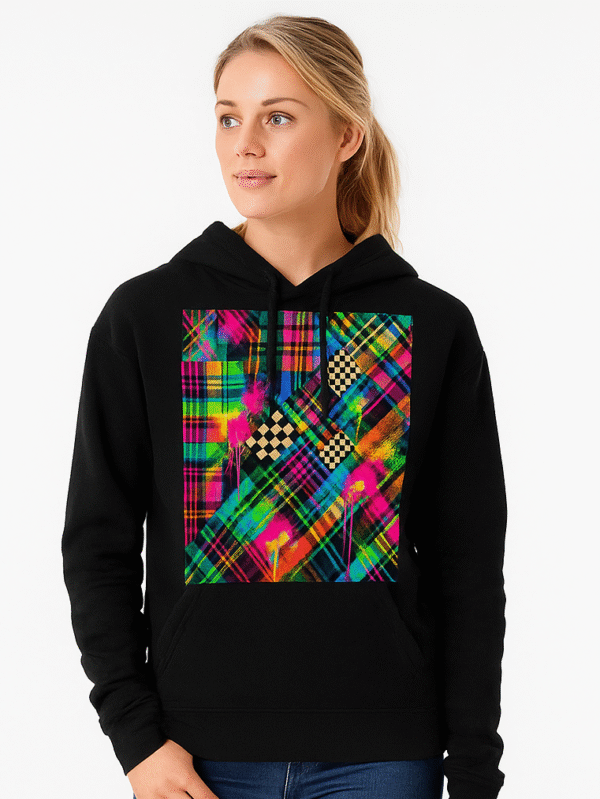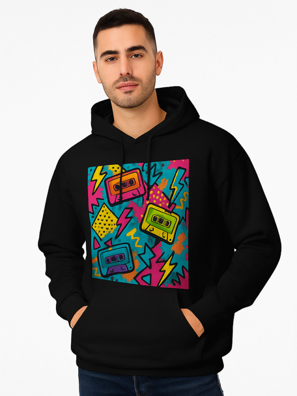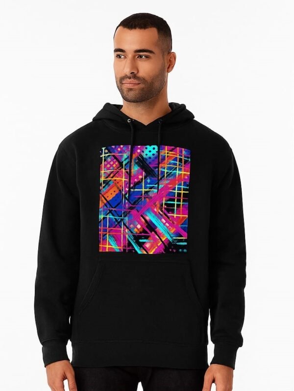 A black hoodie bursting with neon scribbles and graffiti-inspired shapes. Bold, expressive, and built for streetwear swagger.